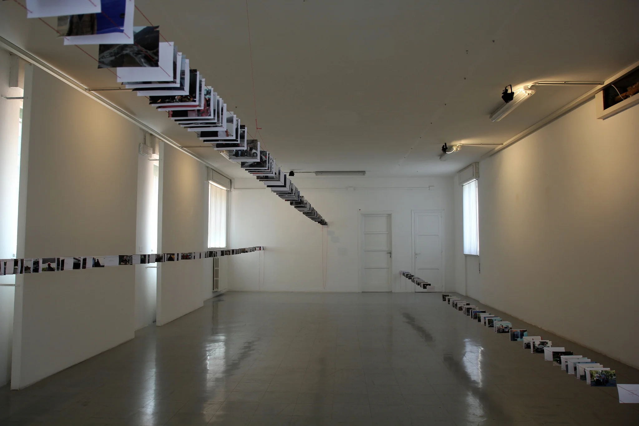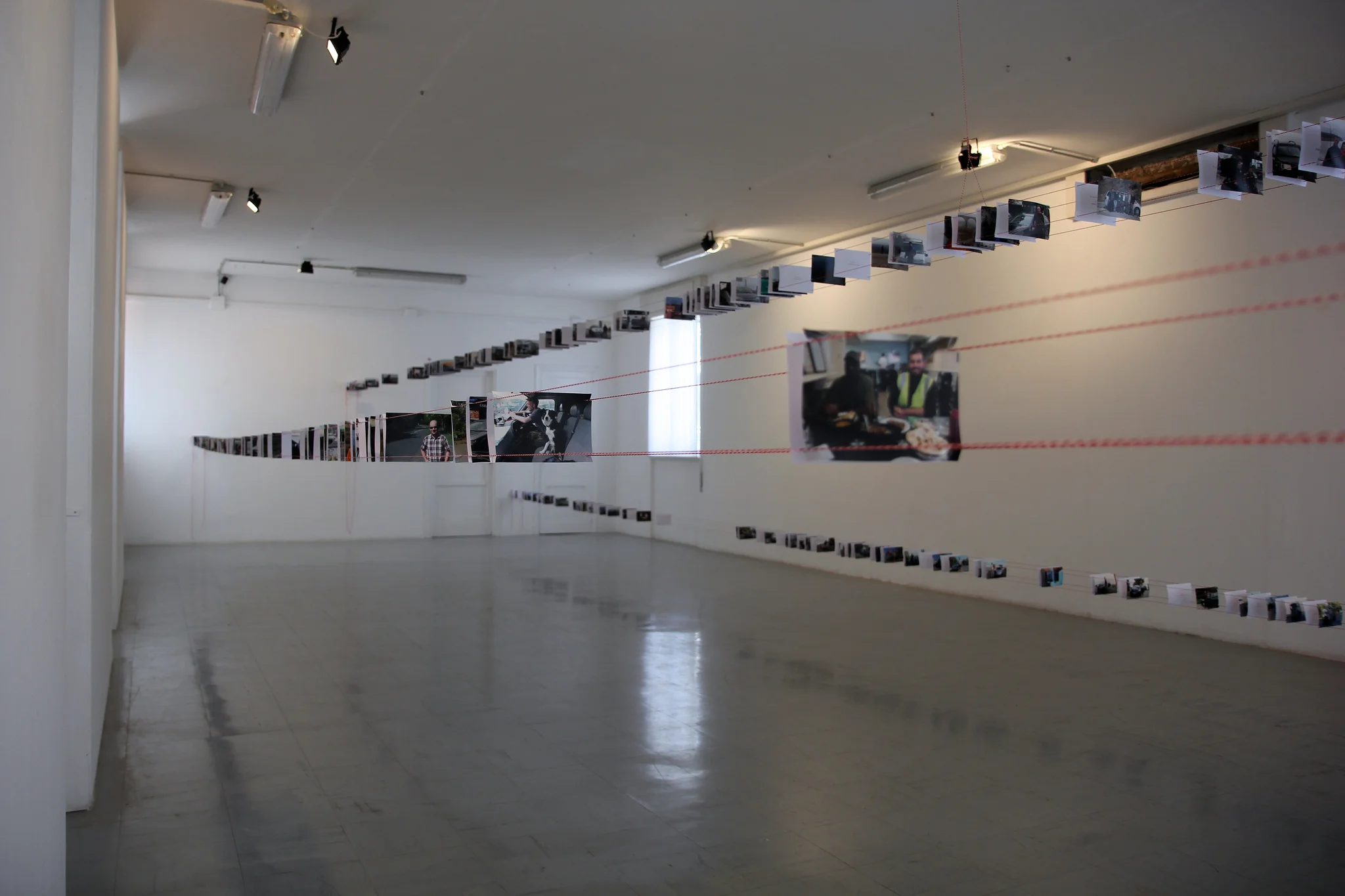 Suspended portraits of 257 drivers provide source material through which the 14000 miles covered and 6000 minutes of waiting can be transposed into a gallery setting. In ARDIS I, miles/minutes were scaled to centimeters (4:1). In ARDIS II, miles/minutes were scaled to seconds (5:8). Both works seek ways to convey duration through snapshots, division of space, sound installation, projection, and information architecture. ARDIS exists as an investigation of how journeys can be codified; in data and logistic detail, and in accumulations of personal intersection.