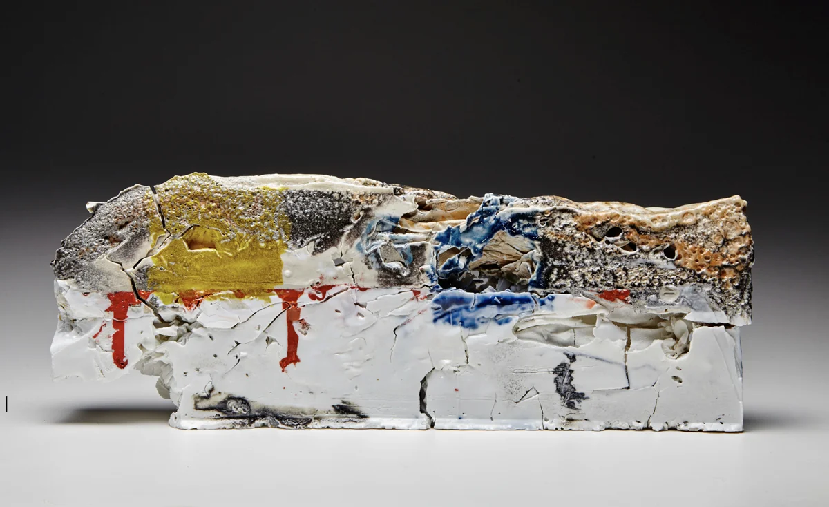 I collected items, used my clothes, and studio materials with clay to make what I call my remnant series. Layered Depths is one of the most exhibited works from that series. This work was the basis of how I have created a few series to come.